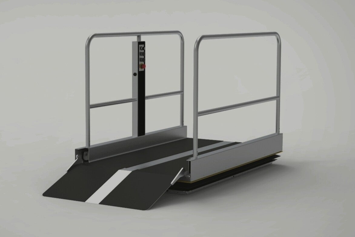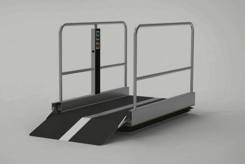 Der Plattformhublift verbindet vertikal geringere Höhenunterschiede von nur einer Stufe bis zu 1,5m und ist in verschiedenen Abmessungen für außen und innen erhältlich: