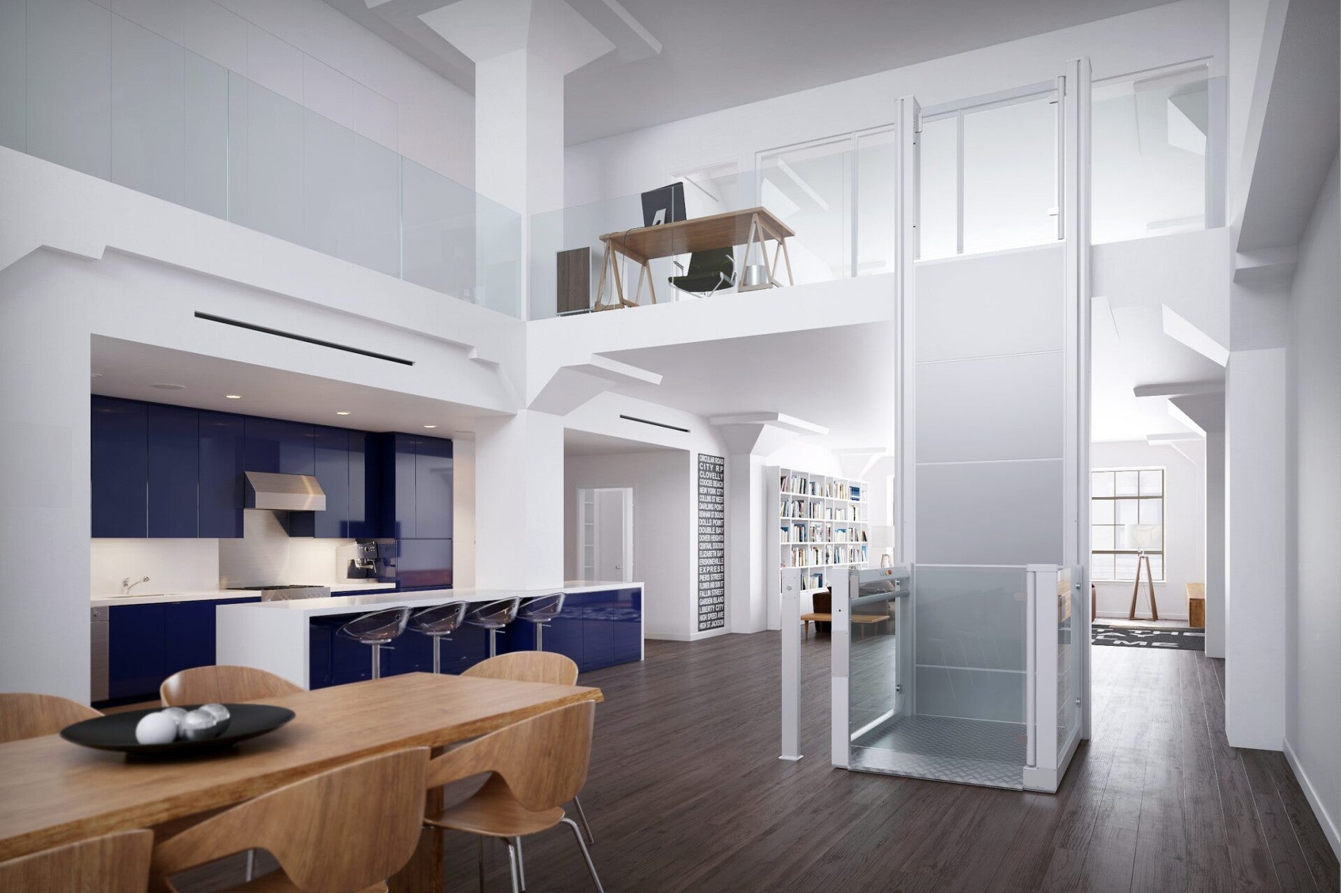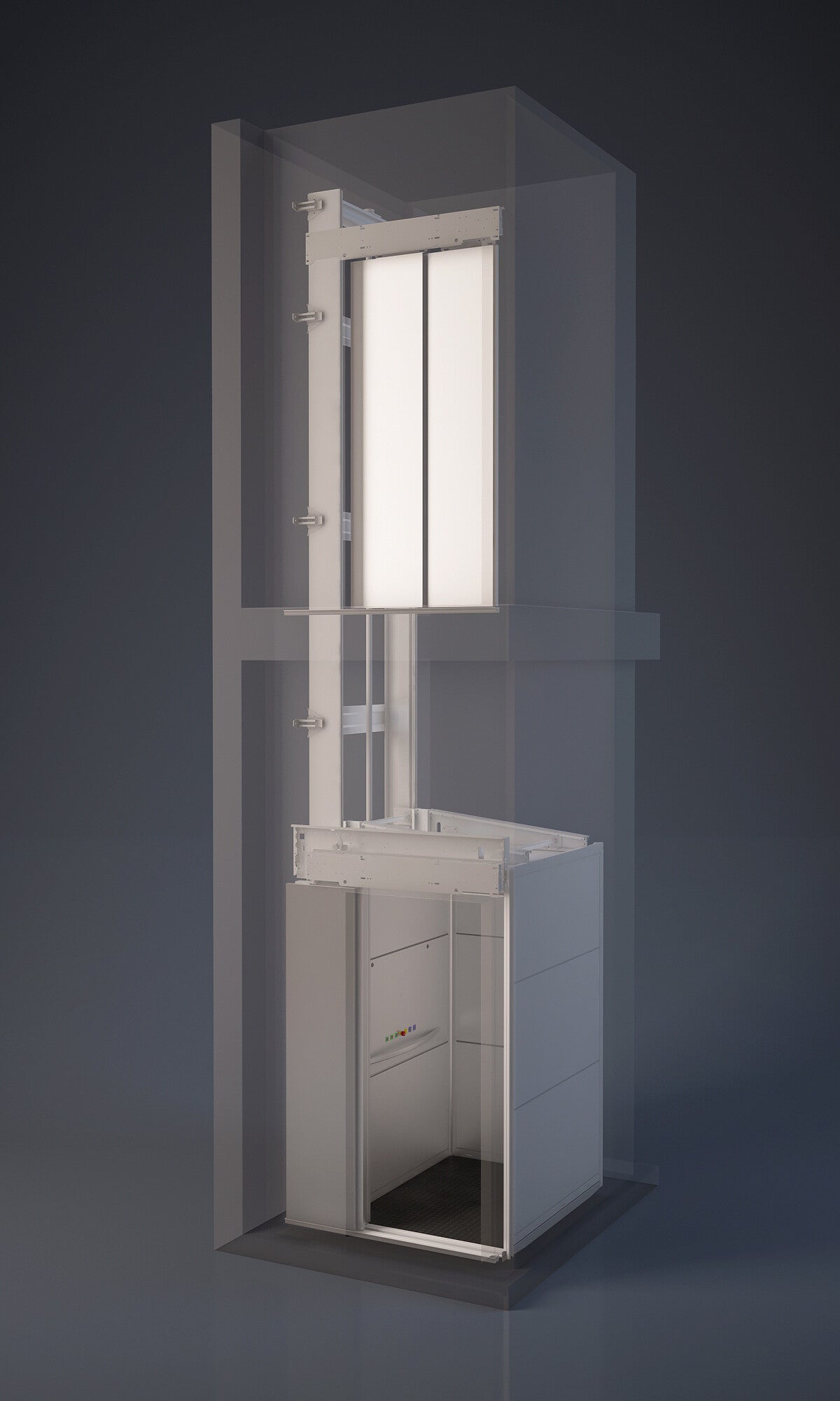 Der Hublift bietet den Einstieg in vertikale Lifte für größere Höhen mit einer halbhohen Kabine für außen und innen sowie zur Verbindung von zwei Etagen: